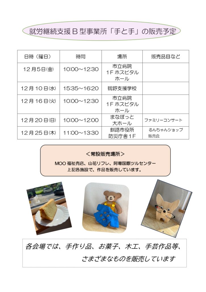 常設販売もご利用ください。→MOO福祉売店、山花リフレ、阿寒国際ツルセンター